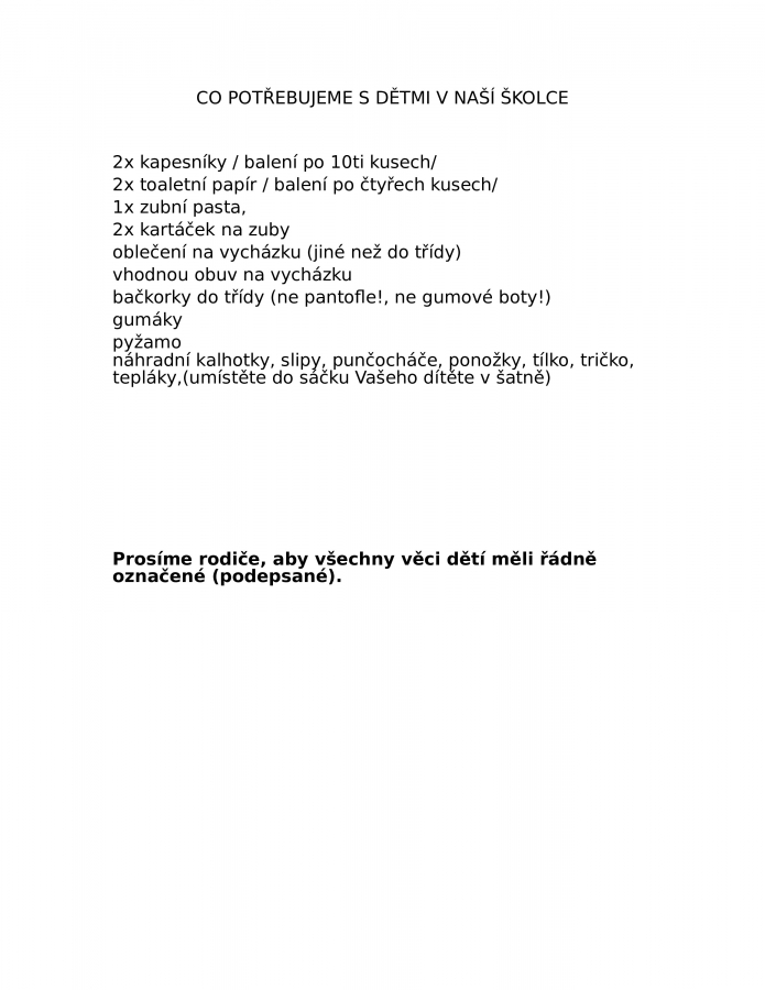 INFORMACE PRO RODIČE