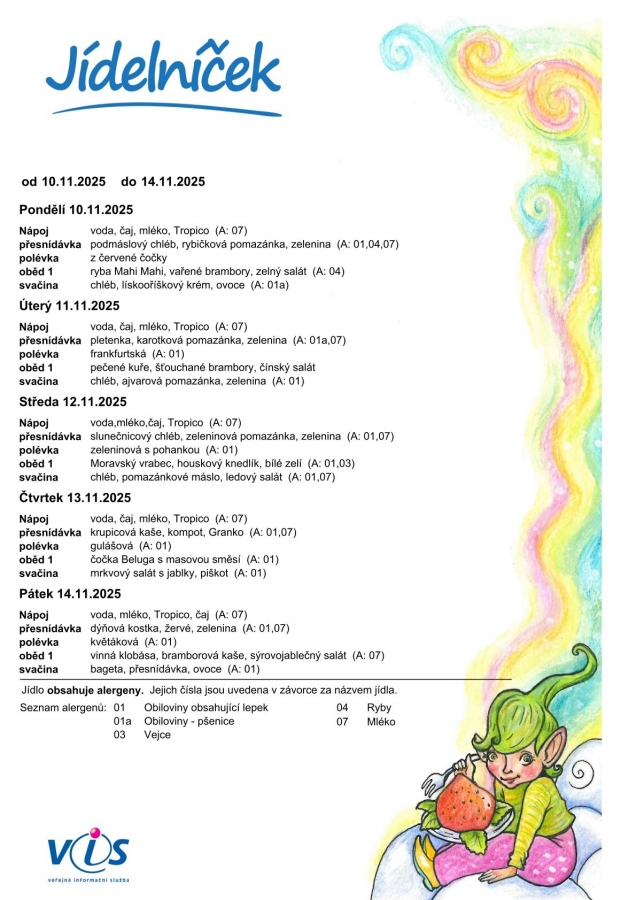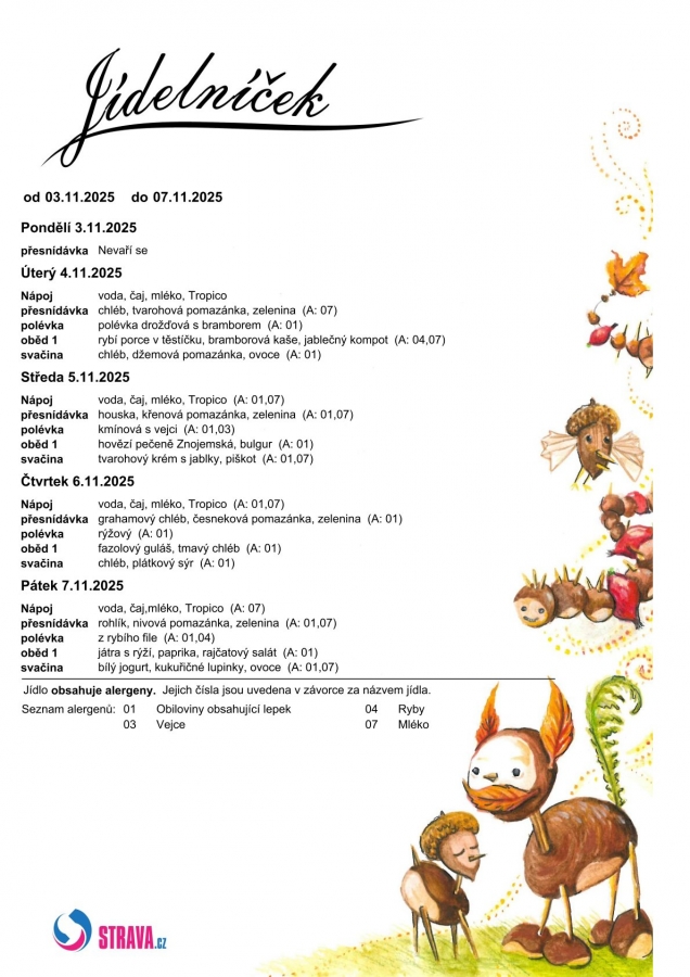 Jídelní lístek: